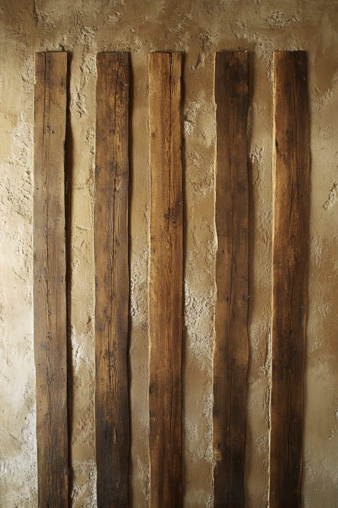 Picture weathered, imperfect wood strips with rich grain and natural knots arranged vertically or horizontally. The reclaimed finish adds history and texture, making your wall a conversation piece. The natural tones—deep browns, grays, or faded hues—bring warmth and authenticity. Paired with simple textiles and vintage accents, this look feels timeless and grounded.