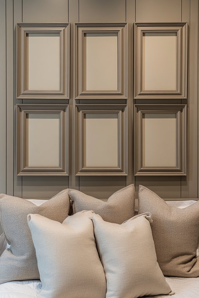 Personalize by adding decorative hardware, painted patterns, or textured finishes inside the frames. Incorporate lighting like LED strips or spotlighting to highlight the framed panels. Use complementary textiles and accessories to tie the look together. Personal touches such as monograms or subtle motifs make the feature uniquely yours.