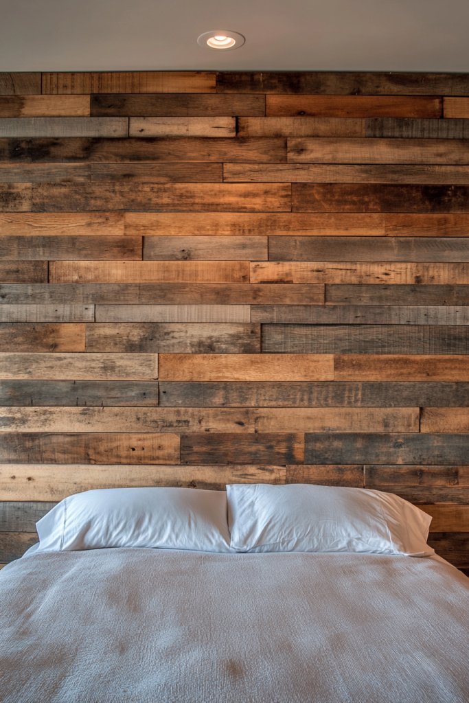 Want a warm, inviting bedroom that’s also eco-conscious? Reclaimed wood battens combine sustainability with rustic charm, giving your space character and warmth. Plus, it’s a rewarding DIY project that adds personality without breaking the bank.