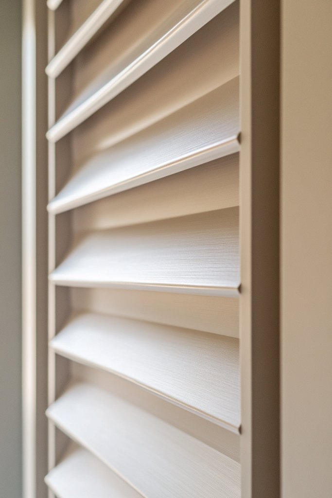 Imagine soft beige and taupe walls with tall, slender vertical battens stretching from floor to ceiling. The subtle texture of the wood adds depth, catching gentle light that filters in during the morning. The overall effect is a serene backdrop that makes the room feel expansive yet cozy, like a warm hug. Combining matte finishes and natural materials enhances the soothing atmosphere.