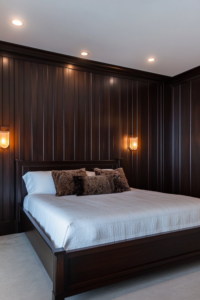 Want to create a focal point in your bedroom that truly commands attention? An accent wall in a dark stain offers dramatic contrast, transforming a plain space into a bold statement. It’s perfect for adding depth and sophistication without overwhelming the room.