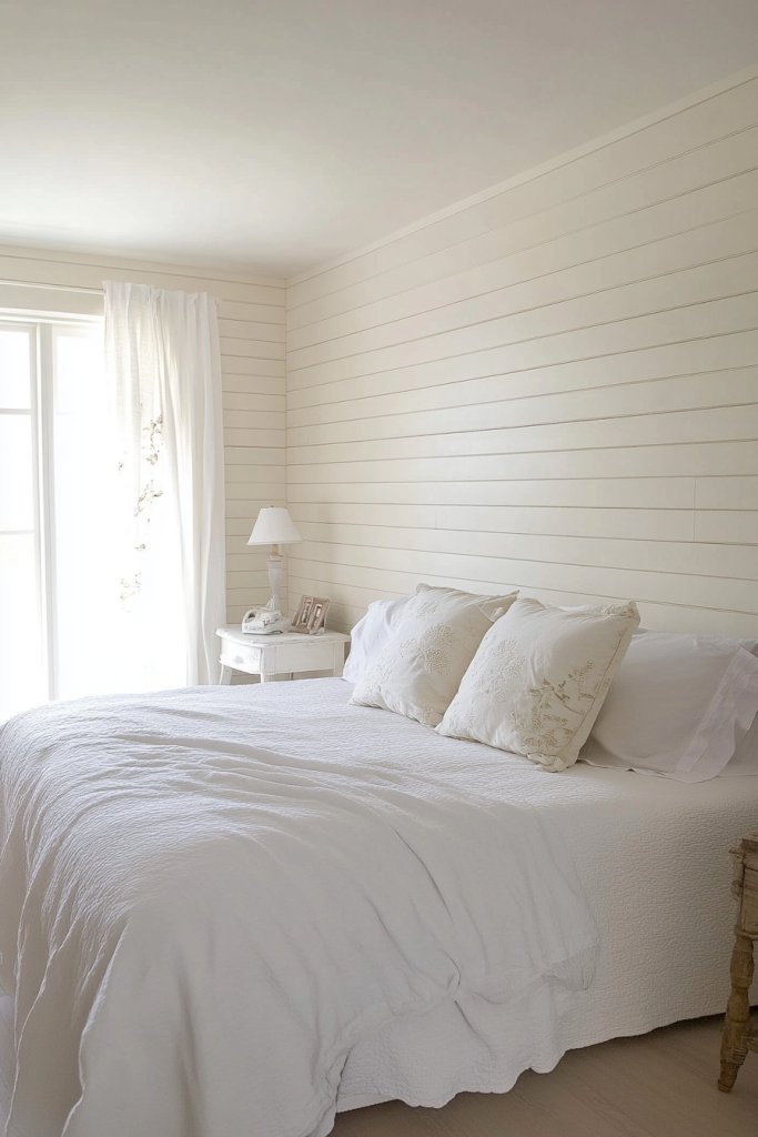 Looking to brighten up a dull or dark bedroom? Light-colored shiplap-inspired battens can create a fresh, airy atmosphere that feels open and inviting. It’s a foolproof way to add texture and charm without sacrificing brightness or simplicity.