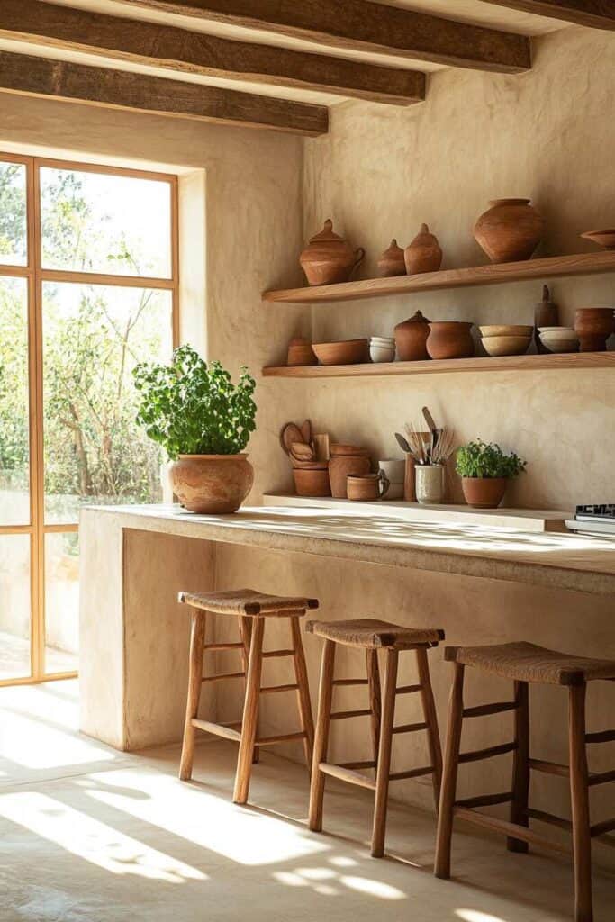 To bring this look to life, use a warm, neutral palette with shades of beige, tan, and brown. Keep the decor minimal but meaningful, incorporating handwoven accents and ceramic elements. Layering soft fabrics like cotton and linen enhances the cozy feel while keeping the aesthetic light and airy. The addition of greenery, such as cacti or potted plants, further emphasizes the natural, tranquil vibe of the space.