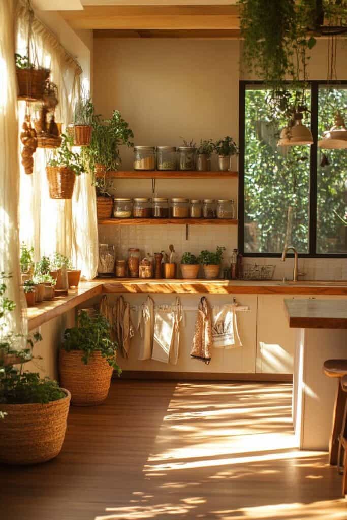 To achieve this look, focus on earthy, neutral tones and raw materials like wood, linen, and jute. Incorporate natural light through sheer curtains to maintain an airy and open feel. Woven baskets, pampas grass arrangements, and macramé wall art bring texture and visual interest. Keep the furnishings simple and functional, with handcrafted details that reflect an effortless, relaxed lifestyle.