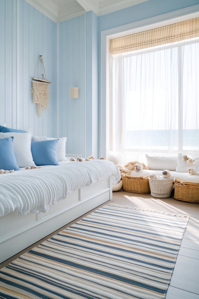 10. Coastal Vibe with Light Blues, Whites, and Nautical Decor