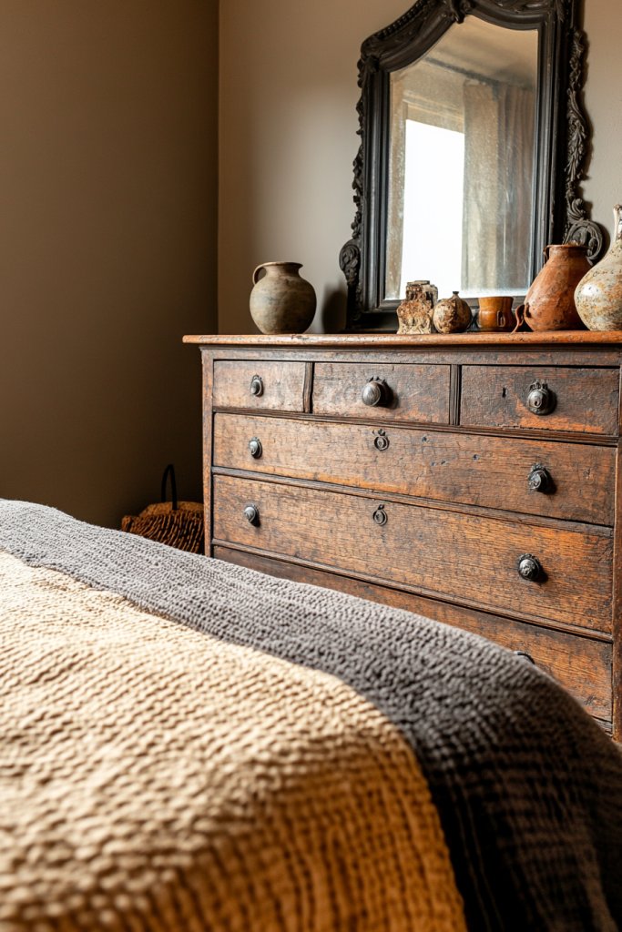 Imagine a bed with a carved wooden headboard, paired with a distressed dresser topped with vintage perfume bottles or a lace-trimmed throw. Soft, faded fabrics in floral or toile patterns add a romantic touch, while antique mirrors reflect light and expand the space. Warm, muted tones—think dusty rose, sage green, or faded blue—set a nostalgic mood. The overall effect? A room that whispers stories of the past while exuding comfort and style.