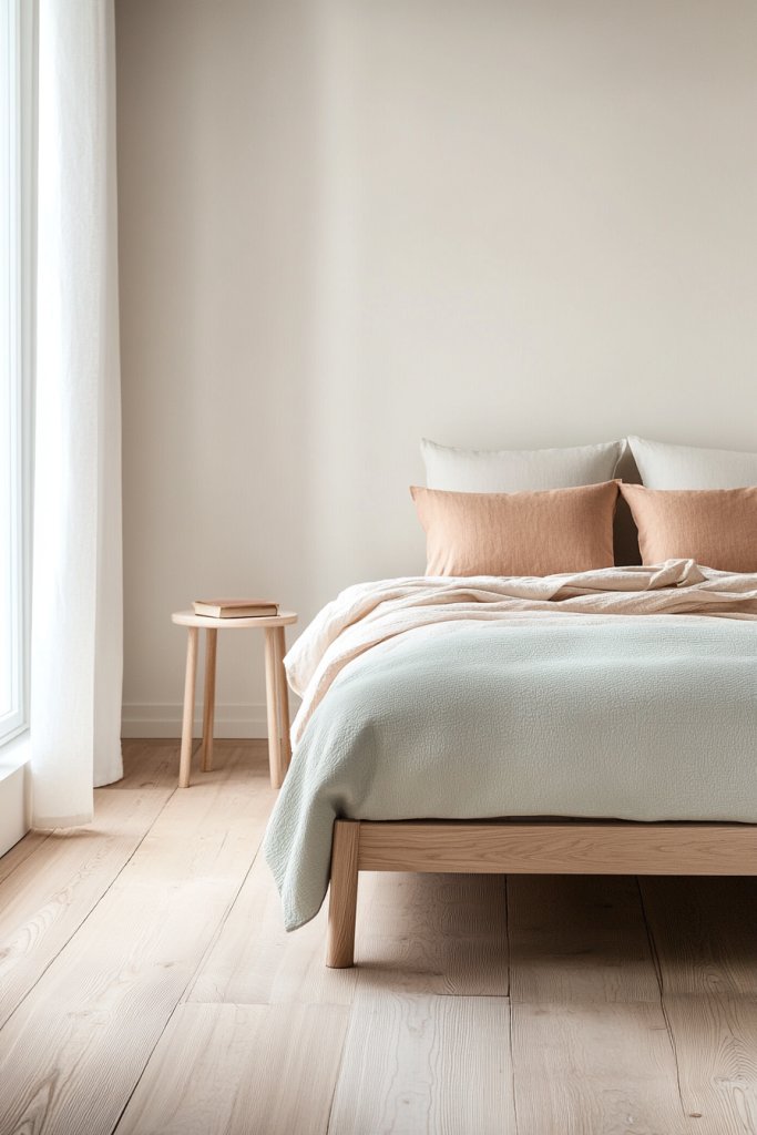 Add subtle personal touches such as a woven basket or a simple ceramic dish for jewelry or keys. Use textured cushions or throws to add layers of comfort. Incorporate a few well-chosen decorative items like a sculptural vase or a minimalist clock. Keep accessories understated to preserve the serene aesthetic.