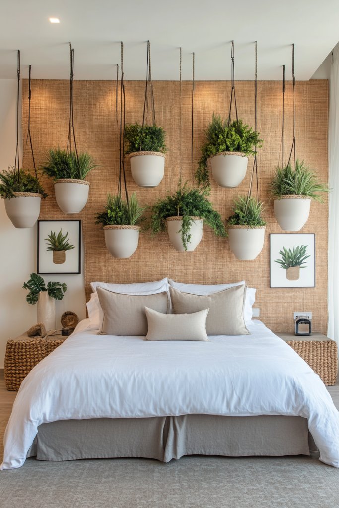 Want to add a touch of nature without cluttering your space? Hanging planters and vertical gardens are perfect for bringing in greenery or decorative elements while saving floor space. Even if you’re not a plant person, creative alternatives can give your room a fresh, lively vibe.