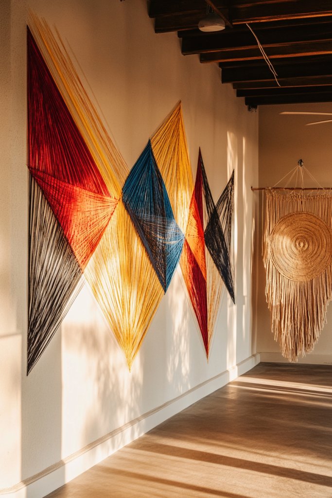 Picture a wall adorned with vibrant, geometric string art in bold colors, casting intricate shadows as sunlight hits it. The texture of the intertwined threads contrasts beautifully with smooth painted walls. Or imagine a boho-inspired wall hanging woven from natural fibers, adding warmth and texture to the room. These pieces serve as focal points, showcasing their personality with every knot and stitch, making their space uniquely theirs.