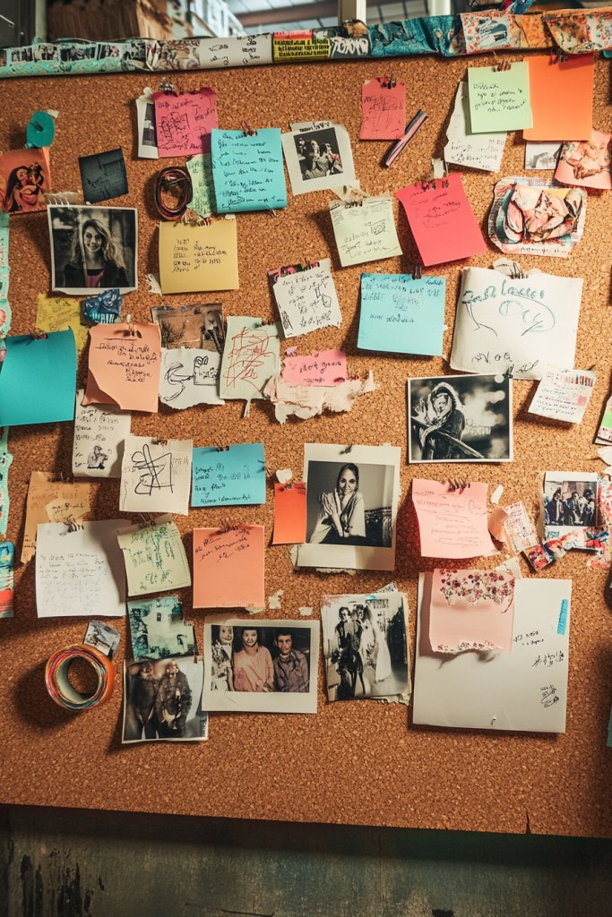 Picture a large corkboard covered with colorful notes, sketches, and photos pinned neatly or in a playful chaos. Add decorative washi tape or fabric around the edges for a customized look. The board becomes a visual hub, full of inspiration, goals, and reminders—like a mini command center. It’s both functional and decorative, making your space feel more lively.