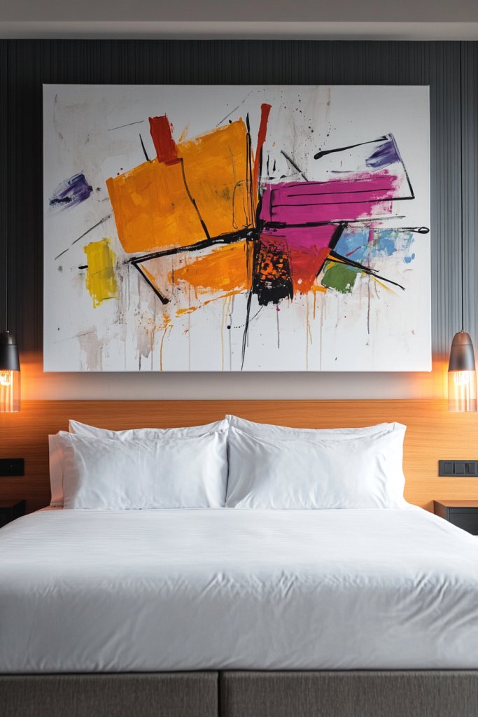 Add personal touches like handwritten quotes, small collages, or mixed media elements. Incorporate your favorite colors or motifs to match your room’s theme. Change your artwork periodically to keep the decor fresh and aligned with your evolving style. Use stencils or tape to create clean lines and professional-looking designs.