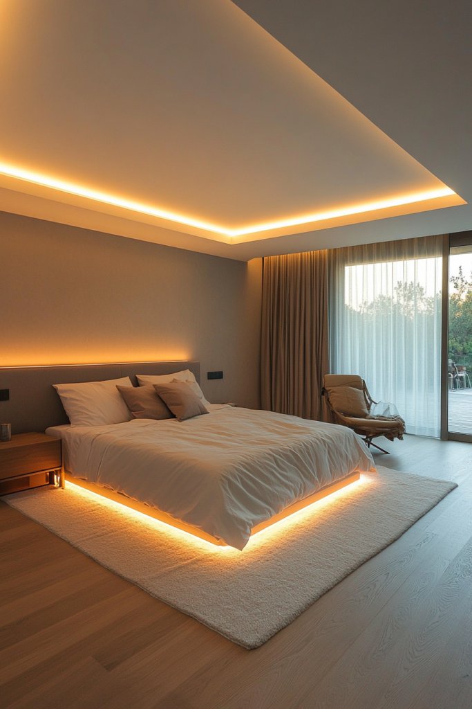 Dreaming of a sleek, clutter-free ceiling that exudes sophistication? Recessed cove lighting offers a seamless way to add indirect, ambient light without visible fixtures. It creates a luxurious, spacious feel, perfect for modern or minimalist bedrooms. Say goodbye to hanging fixtures and hello to clean, elegant illumination.