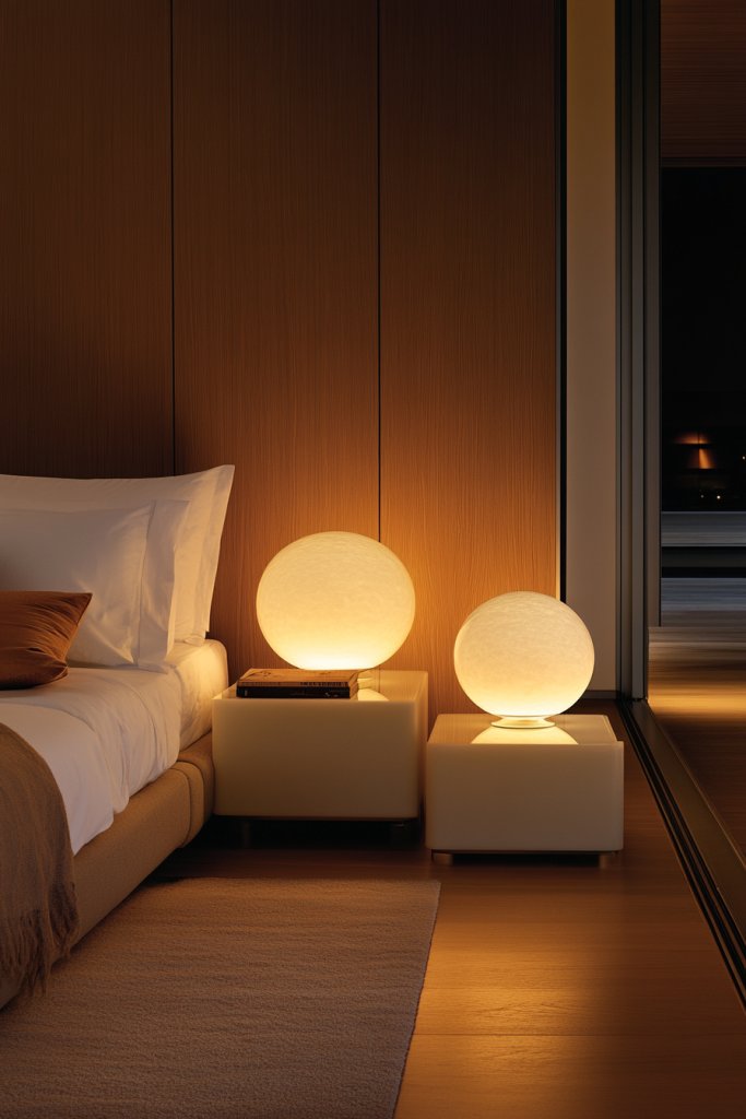 Want a statement piece that combines modern design with cozy lighting? Spherical globe lamps emit a soft, diffused glow that adds a touch of elegance and serenity. They’re versatile enough to suit various decor styles, from contemporary to Scandinavian. Perfect for creating a calming, stylish bedroom centerpiece.