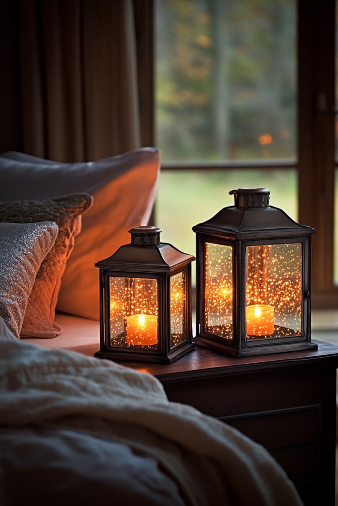7. Bedside Lanterns with Battery-Operated LED Candles