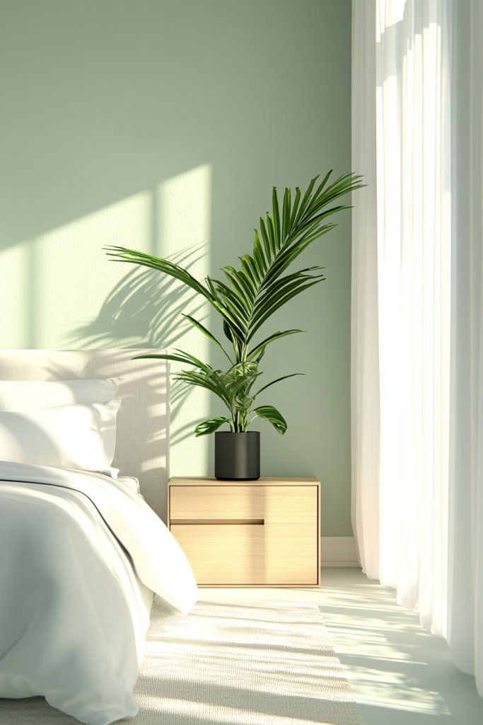 A sage green accent wall or bedding can serve as a focal point, while warm white trim or curtains will keep the space feeling airy and open. Accessorizing with soft, earthy tones—like terracotta or soft gold—can elevate the aesthetic.