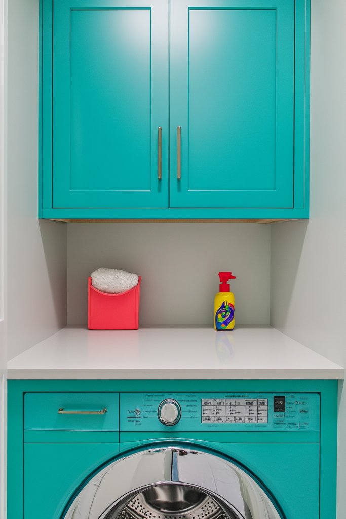 Looking to make your tiny laundry room stand out? Bright aqua is a bold, playful hue that adds instant energy and fun. It’s perfect for those who want their laundry space to feel lively and inviting, not dull and dreary. Who says chores can’t be a splash of excitement?