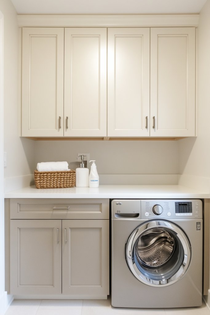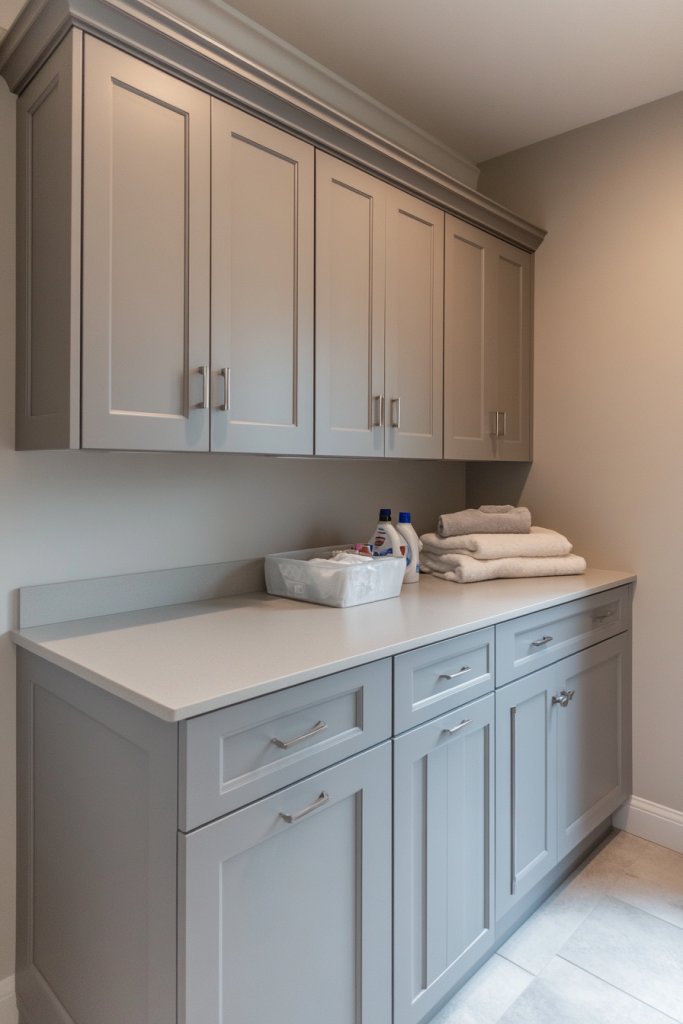 A light gray palette with warm undertones offers a timeless, elegant upgrade that fits any style. It’s perfect for small rooms where you want to maximize sophistication without clutter. Once finished, your laundry space will feel like a mini luxury retreat—proof that subtlety can be stunning.