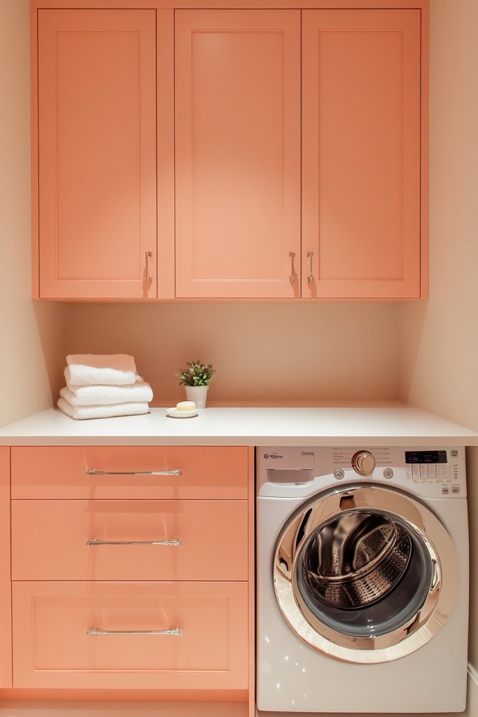 Pale peach and blush hues turn an ordinary laundry room into a warm, inviting retreat. They evoke a sense of softness and comfort, perfect for making chores feel less like a task and more like a treat. Once transformed, your laundry space will radiate personality and charm—proof that gentle shades work wonders.