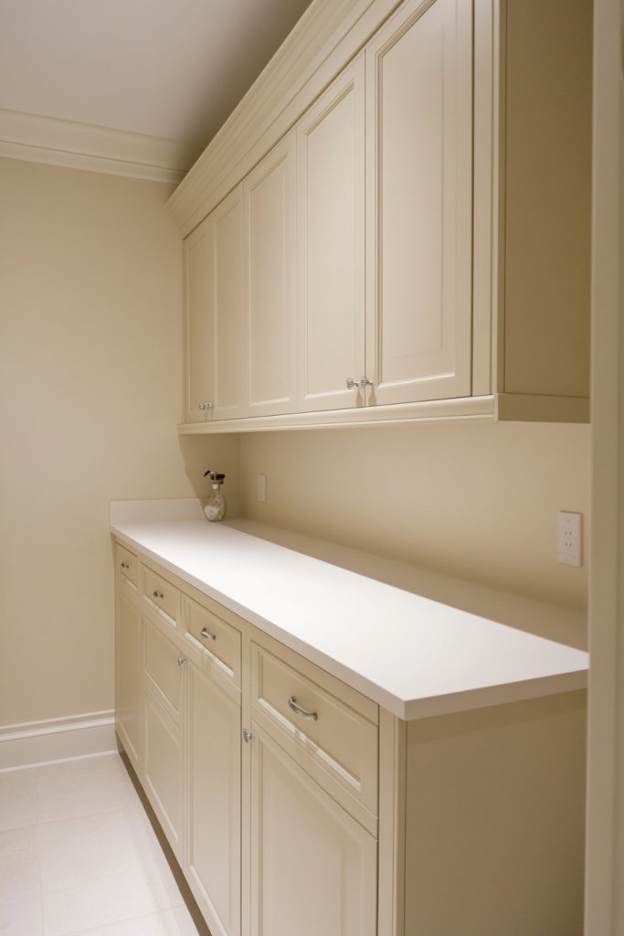 Feeling overwhelmed by busy patterns or bold colors in your small laundry room? Subtle beige or cream offers a refined, neutral backdrop that exudes sophistication. It creates a calm, understated elegance that works with any decor style. Who says laundry spaces have to be boring?