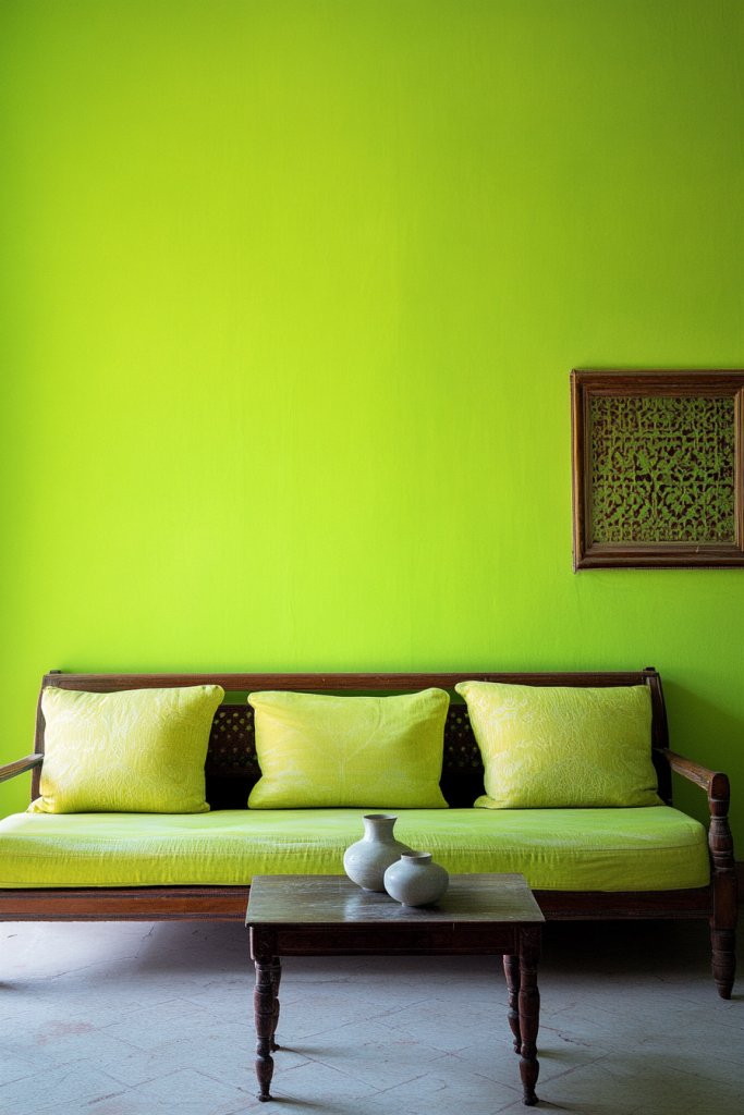 14. Chartreuse Green for a Vibrant Yet Calm Living Room