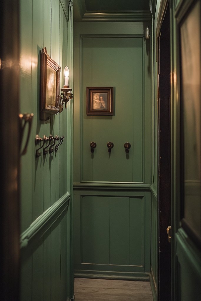 15. Dusty Green for a Vintage-Inspired Hallway