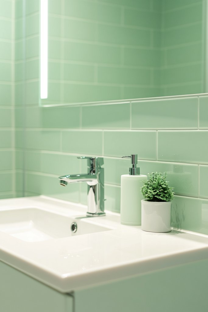 Combine mint with crisp whites or soft greys for a contemporary look. For a more playful vibe, add pastel accessories or patterned tiles. In smaller bathrooms, keep the palette light and avoid clutter to maximize the sense of space. Larger bathrooms can handle darker accents or richer textiles for contrast.