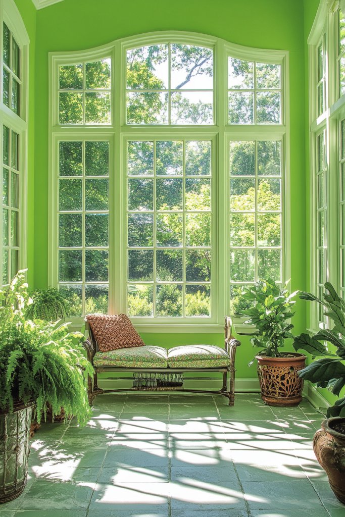 9. Botanical-Inspired Green for a Nature-Infused Sunroom