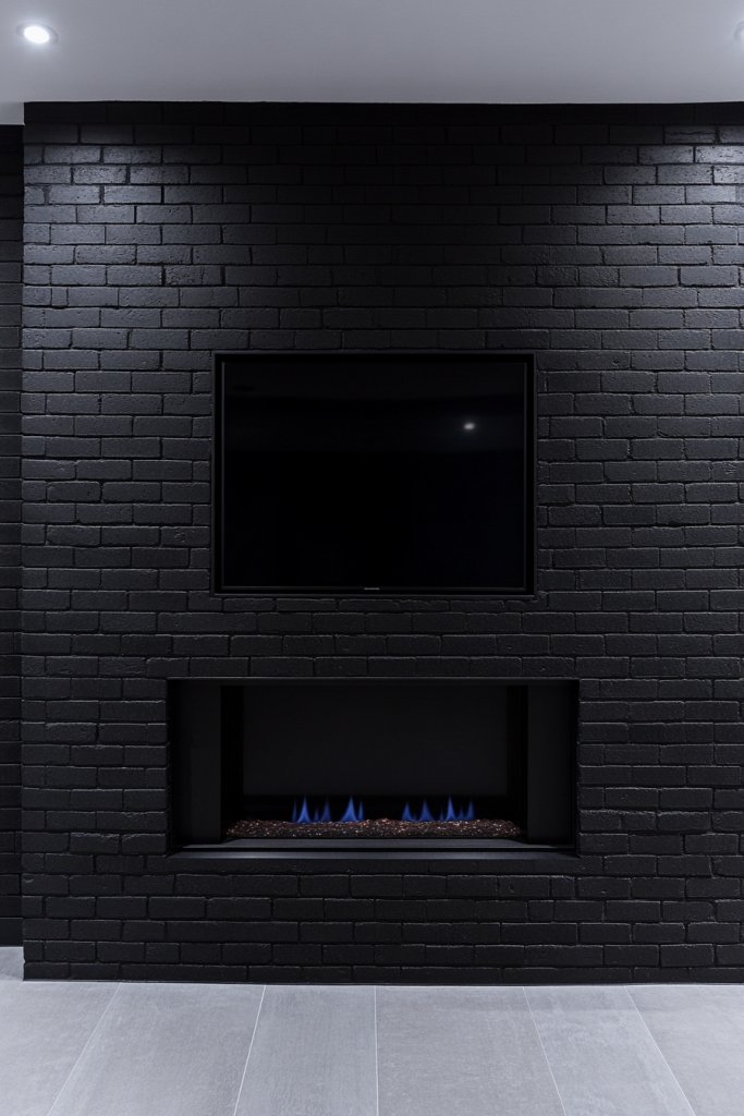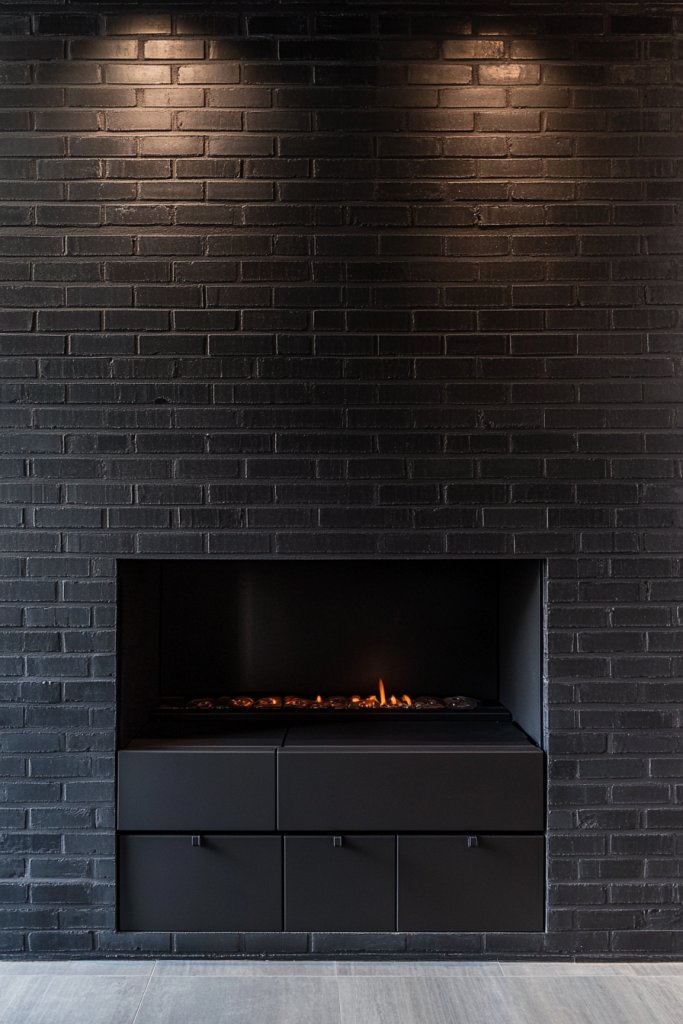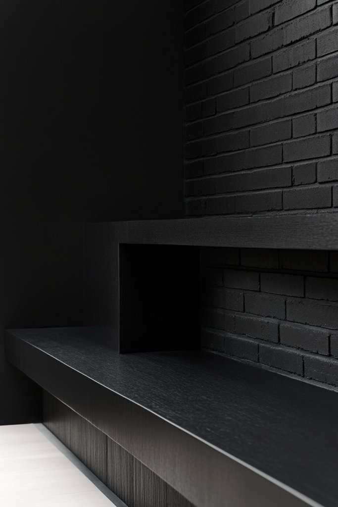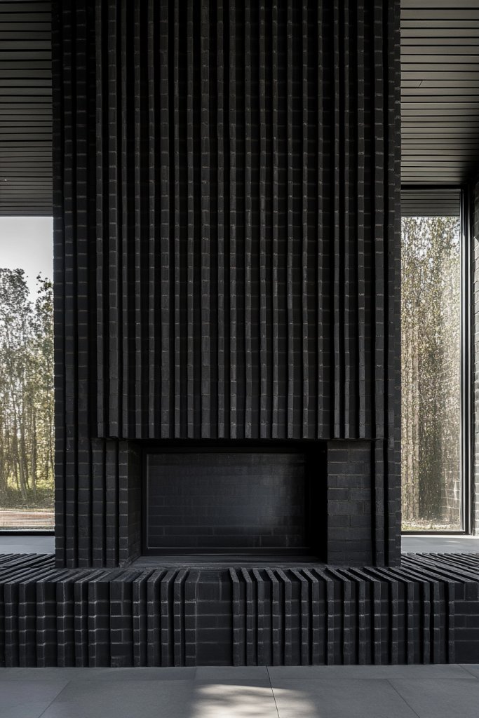 3. Matte Black Brick Fireplace with Bold Architectural Detailing