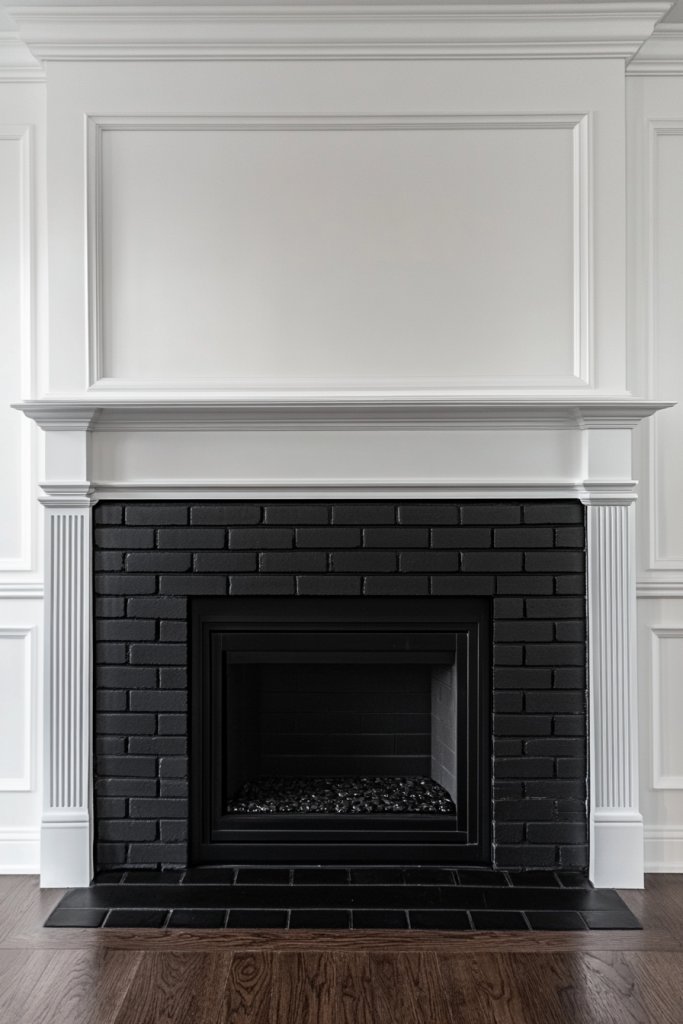 7. Black Brick Fireplace with Contrasting White or Light-Colored Surrounds