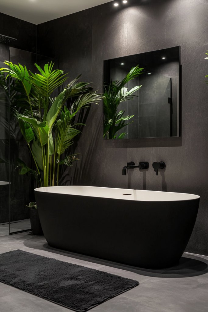 A bold, black-framed mirror can reflect your style while enhancing the sense of space. Don’t forget about smaller details—like matte black soap dispensers or toothbrush holders—that can tie the room together seamlessly.