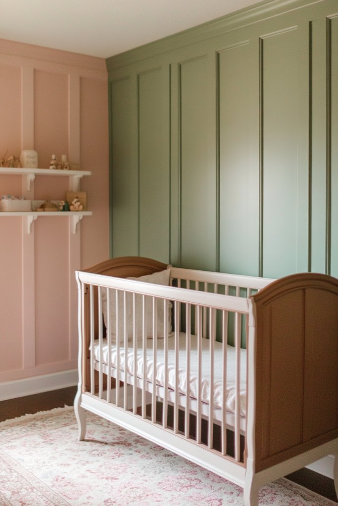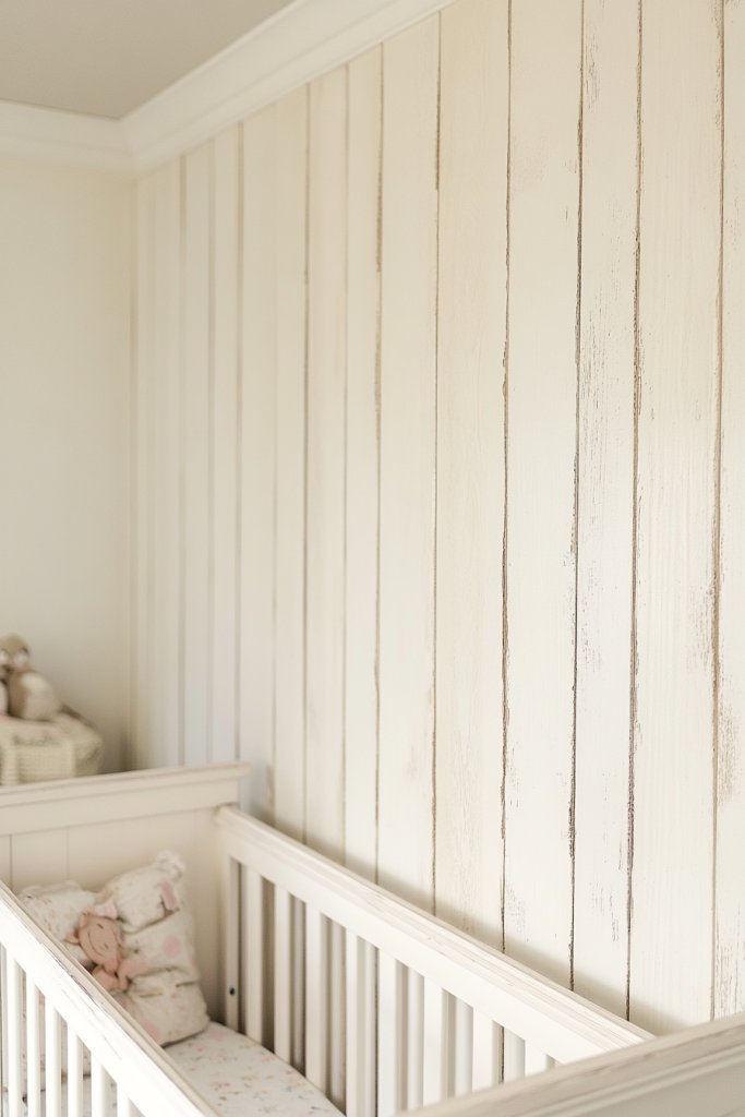 Craving a nursery that feels nostalgic yet fresh? Vintage-inspired board and batten in soft, muted colors creates a cozy, timeless environment. It’s perfect for parents who love a touch of old-world charm combined with modern comfort. Think gentle hues and classic detailing for a look that never goes out of style.