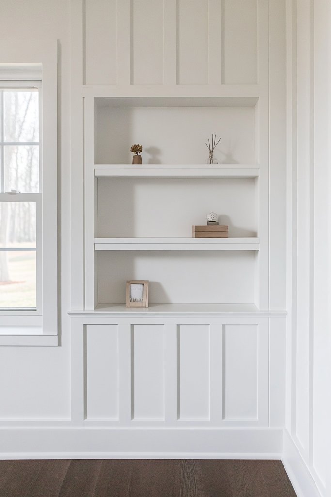 Struggling with clutter and storage in your nursery? Built-in shelves integrated into your board and batten design solve both problems beautifully. They add a sleek, seamless look while providing essential space for toys, books, or decorative items. It’s a win-win for style and function.