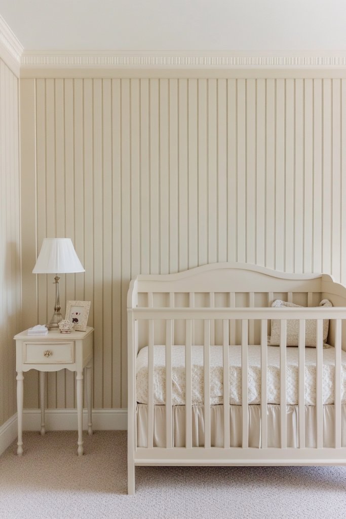Mix and match with different painted finishes—maybe white with a subtle gray or beige beadboard. Use decorative molding or trim to accentuate the beadboard detail further. For a vintage look, opt for distressed paint or antique hardware. The style adapts seamlessly to both traditional and transitional nursery designs.