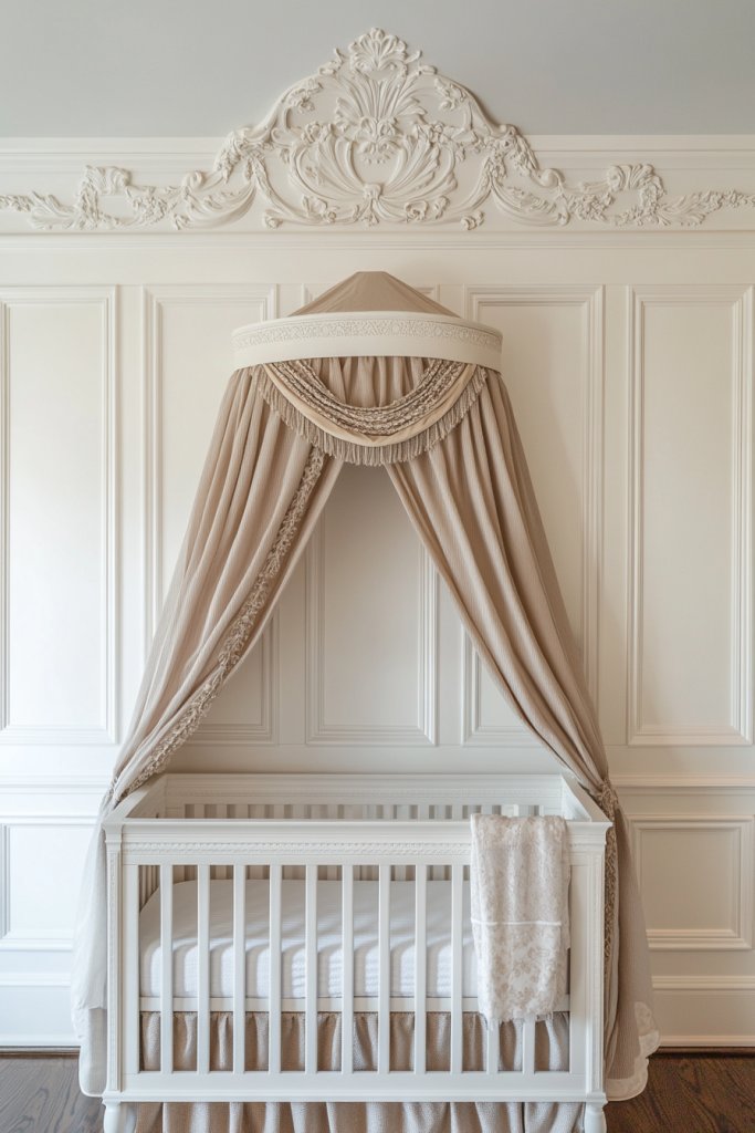 Add decorative rosettes or small carved accents at corners for extra detail. Personalize with a custom-painted quote or name in a stylish font. Incorporate plush textiles or textured rugs to soften the look. These touches make the nursery uniquely yours while maintaining elegance.