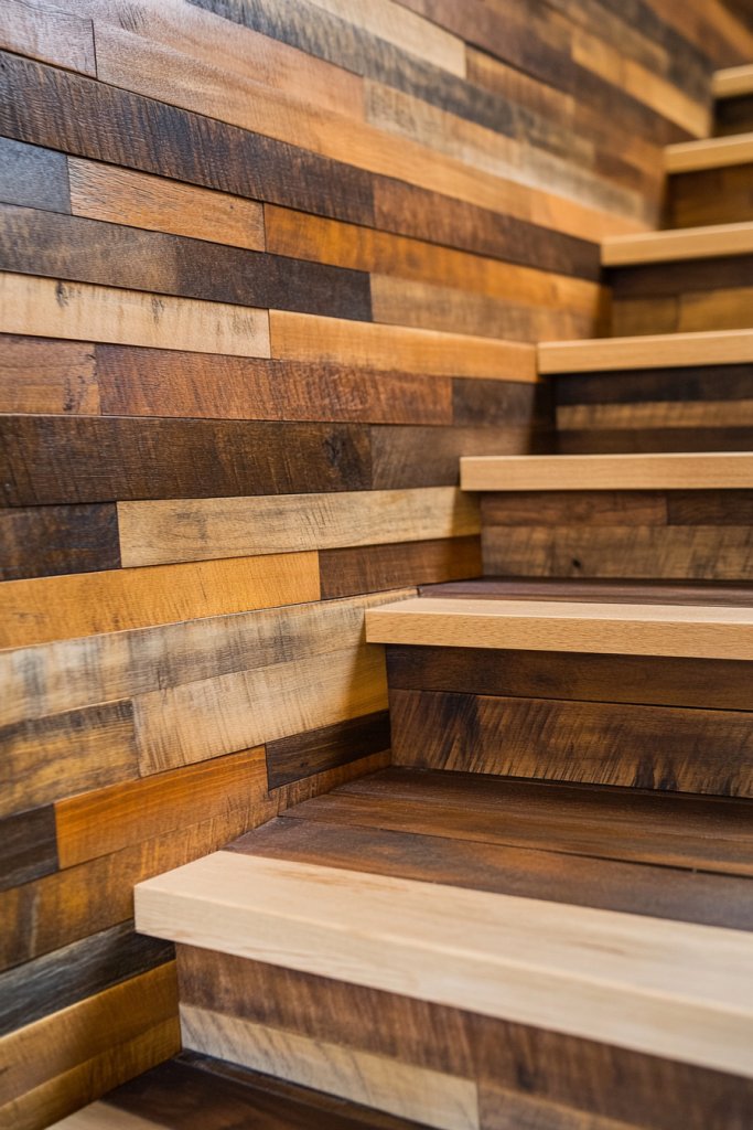 This approach celebrates craftsmanship and creativity, making your staircase a true centerpiece. It reflects your personality and appreciation for detail. The varied textures and widths add character, ensuring your space feels warm, lively, and inviting.
