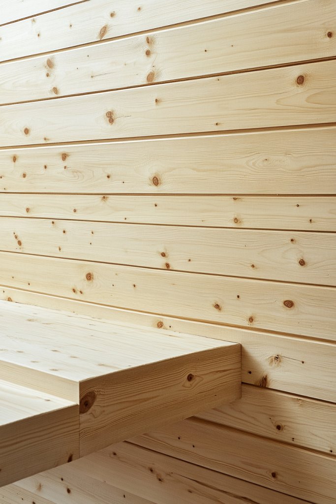Imagine light-colored pine panels with subtle knots and a soft matte finish that absorbs light rather than reflecting it. The wood’s natural grain creates a gentle texture that invites touch. The overall effect is serene and inviting, blending seamlessly with neutral-toned walls and soft textiles. It feels like a breath of fresh air in your home.