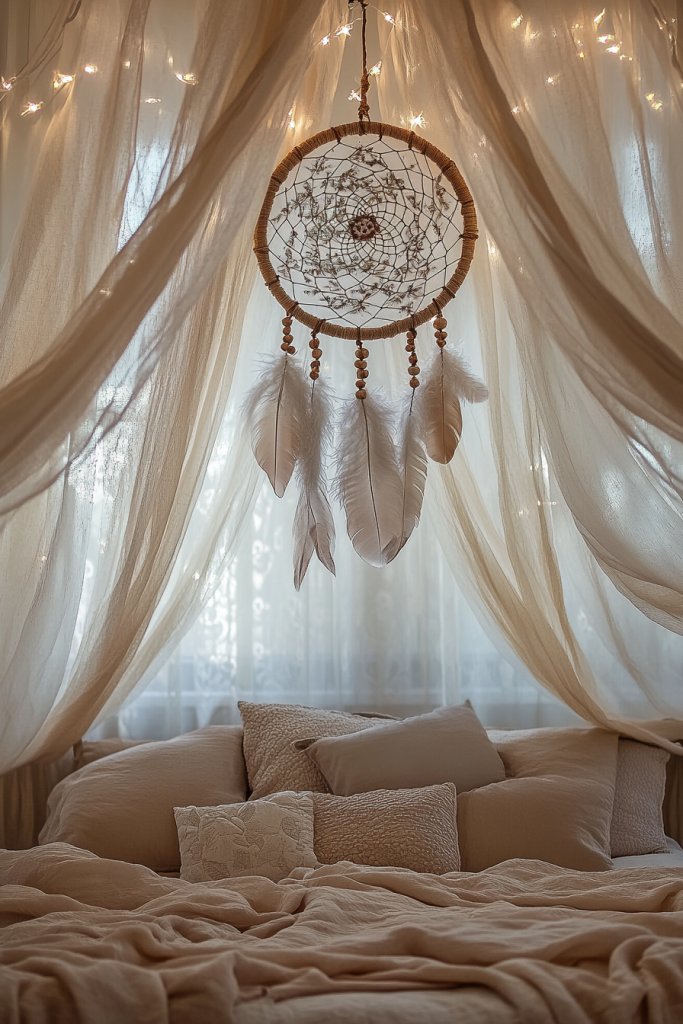 A canopy or dreamcatcher elevates your bedroom decor to a dreamy, fairy-tale level. It’s a simple upgrade that makes your space feel unique and inviting. Once you see the cozy, whimsical ambiance it creates, you’ll want to add similar touches elsewhere in your home. Turn your bedroom into a haven of comfort and imagination.