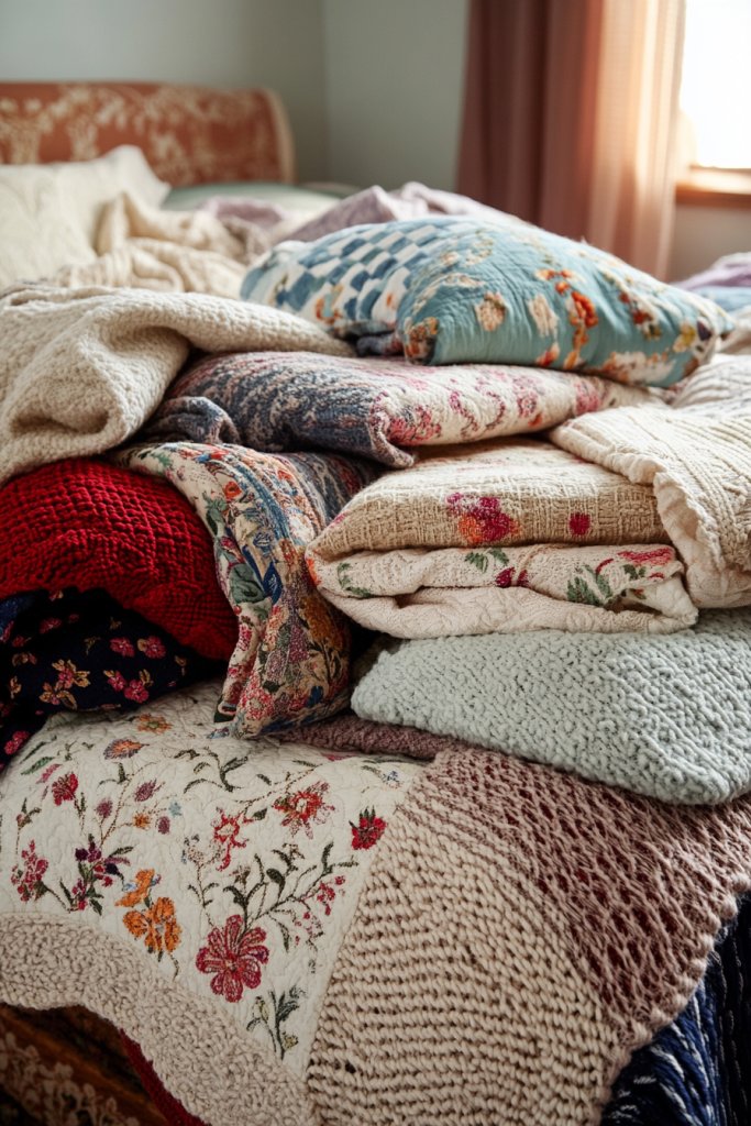14. Eclectic Mix of Throw Blankets and Quilts