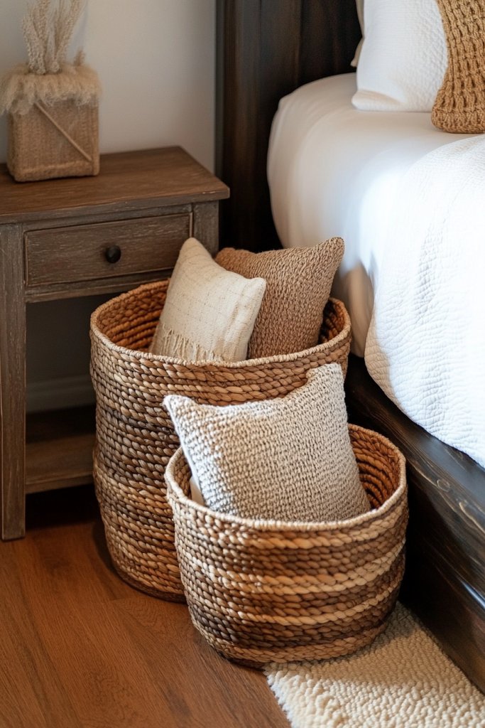 Clutter can turn a beautiful bedroom into chaos in seconds. Finding stylish storage solutions that blend into your decor is a constant challenge. Woven baskets offer a perfect combo of practicality and aesthetics, helping you stay organized while adding texture and warmth. If clutter is your bedroom’s worst enemy, this fix is an easy win.