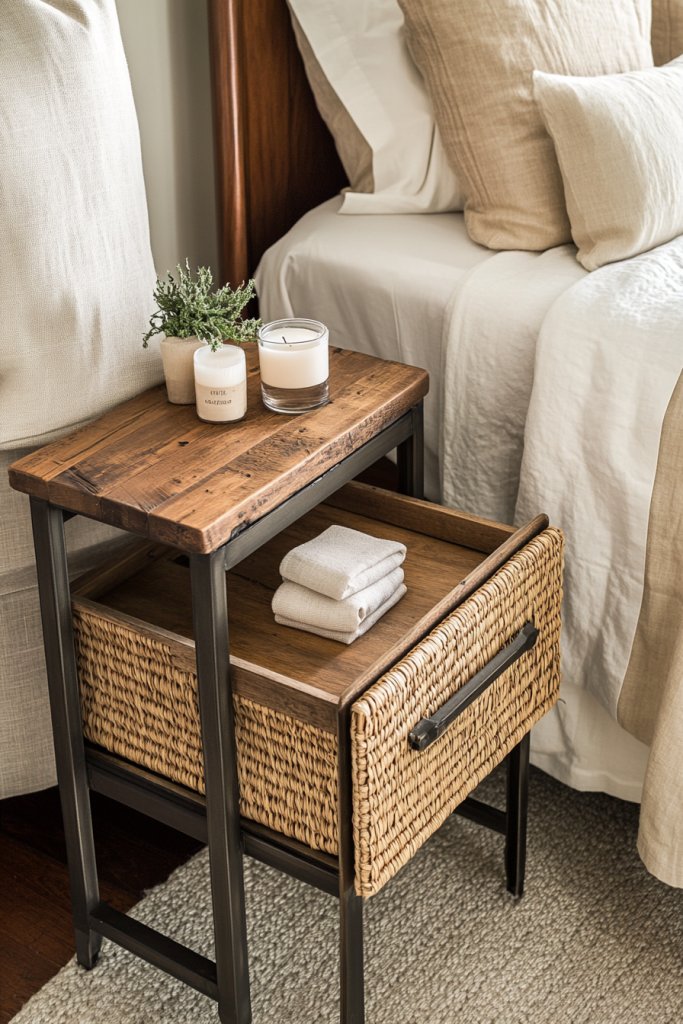 Are your bedside tables feeling dull or mismatched? A mix of materials can instantly add visual interest and personality. Combining wood, metal, and woven elements creates an eclectic charm that elevates your entire bedroom aesthetic. If you’re tired of uniform furniture, this approach offers a fresh, stylish alternative.