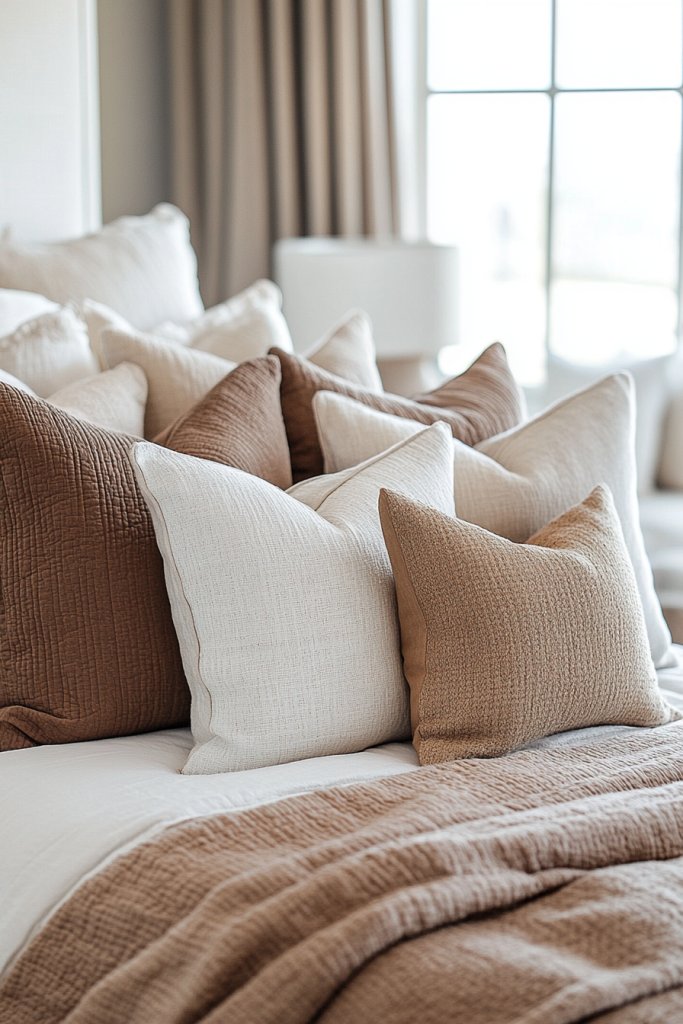 10. Earthy Color Palette with Accent Pillows and Decor