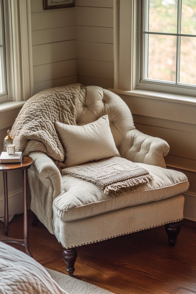 Choose from armchairs, chaise lounges, or even window seats depending on your space. Layer with textured throws and decorative cushions that match your overall decor. Seasonal updates can include heavier blankets or lighter fabrics for summer. Add a small bookshelf or a basket for storing your favorite reads nearby.