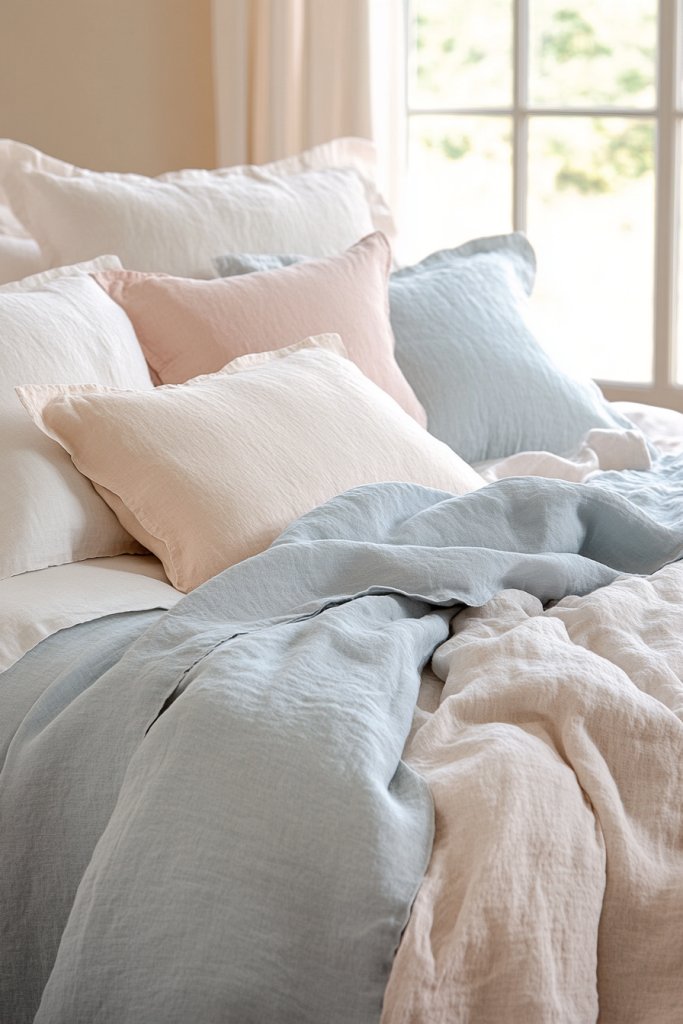 13. Functional Linen or Cotton Bedding in Soft Hues