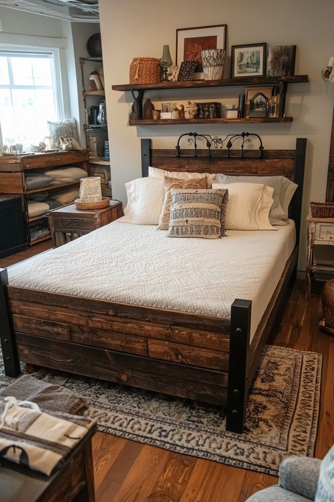 Ever wish your bedroom had a focal point that exudes character and warmth? A rustic wooden headboard with vintage charm does exactly that. It transforms a plain wall into a statement piece and adds personality to your space. Plus, it’s a great way to incorporate natural textures without heavy decor.