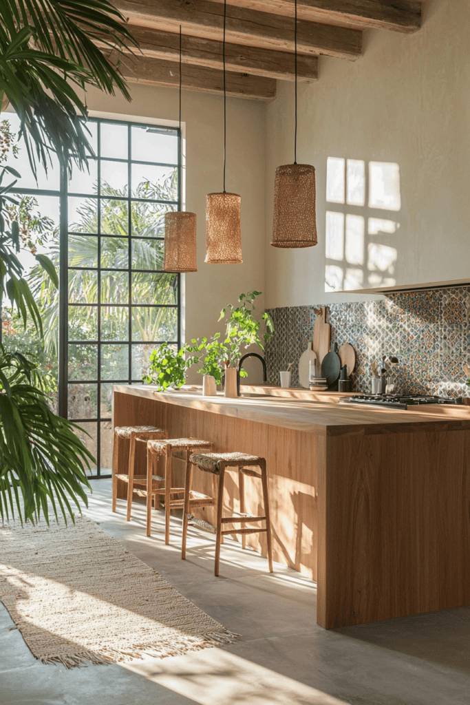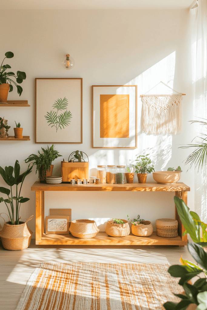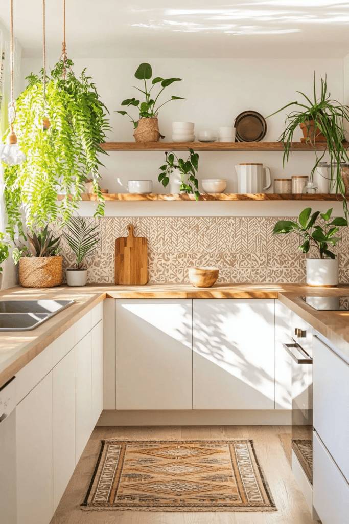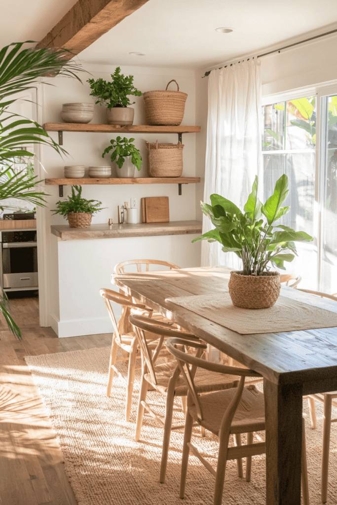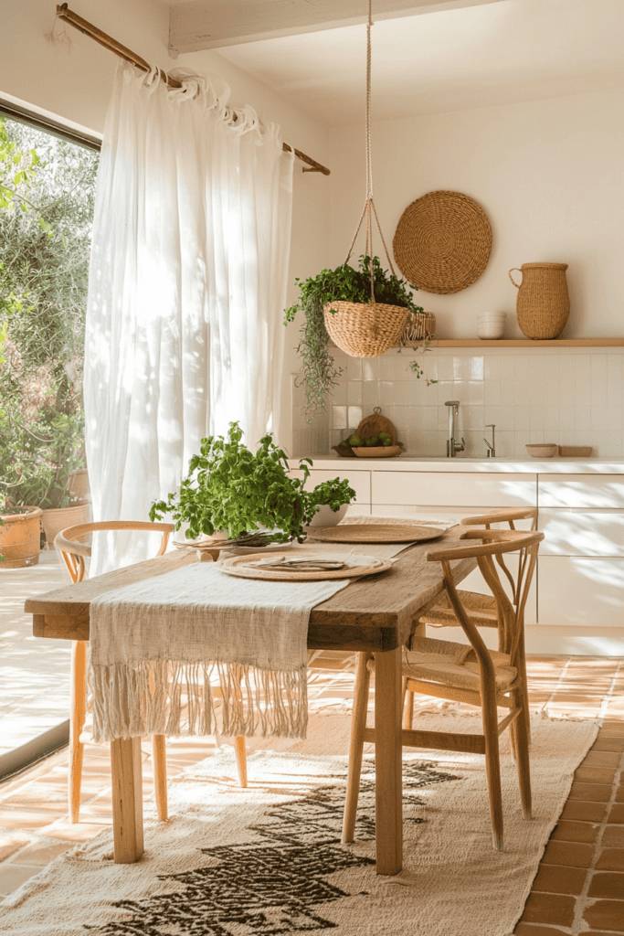 While you might think of woven baskets as mere storage solutions, they can also be stunning decorative accents in your boho kitchen. Imagine clusters of various-sized baskets hanging on the wall, adding texture and warmth to the space. You can use them to store fruits, herbs, or even kitchen linens, keeping everything tidy yet stylish.