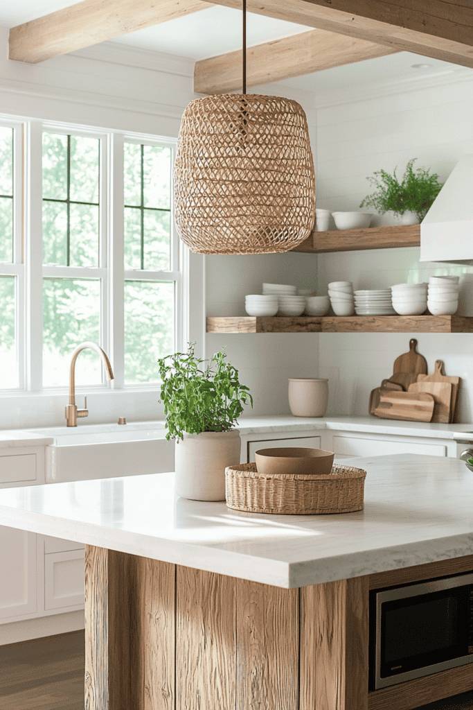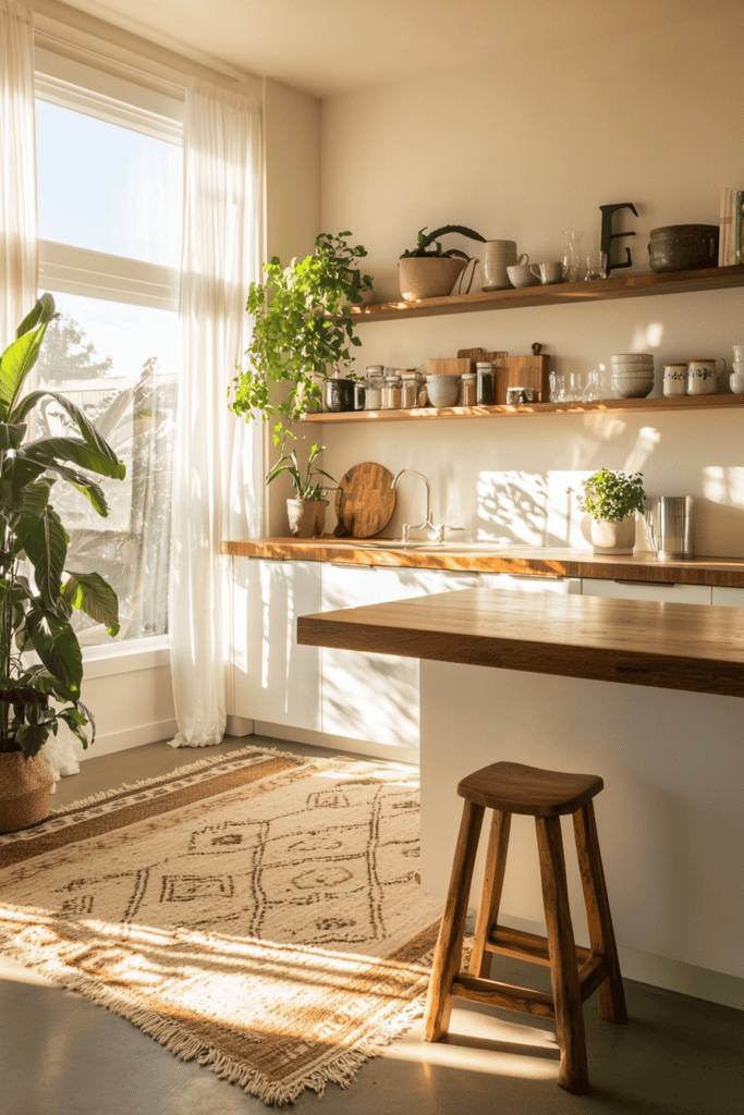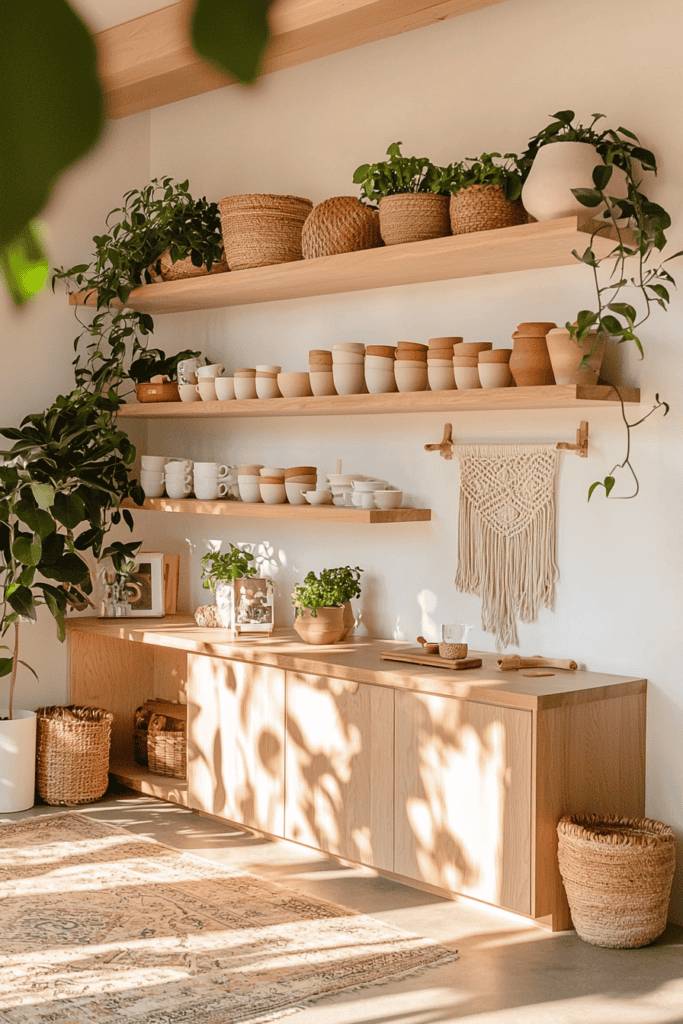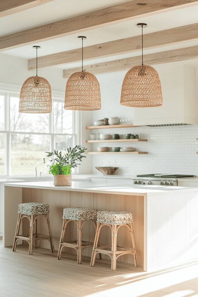 Choose baskets made from natural fibers like seagrass or rattan for an earthy touch. Mixing different shapes and colors can create visual interest and reflect your unique personality. Place a few on open shelves, or stack them in a corner for a casual, lived-in look. Woven baskets not only enhance functionality but also contribute to the bohemian charm you’re aiming for in your kitchen.