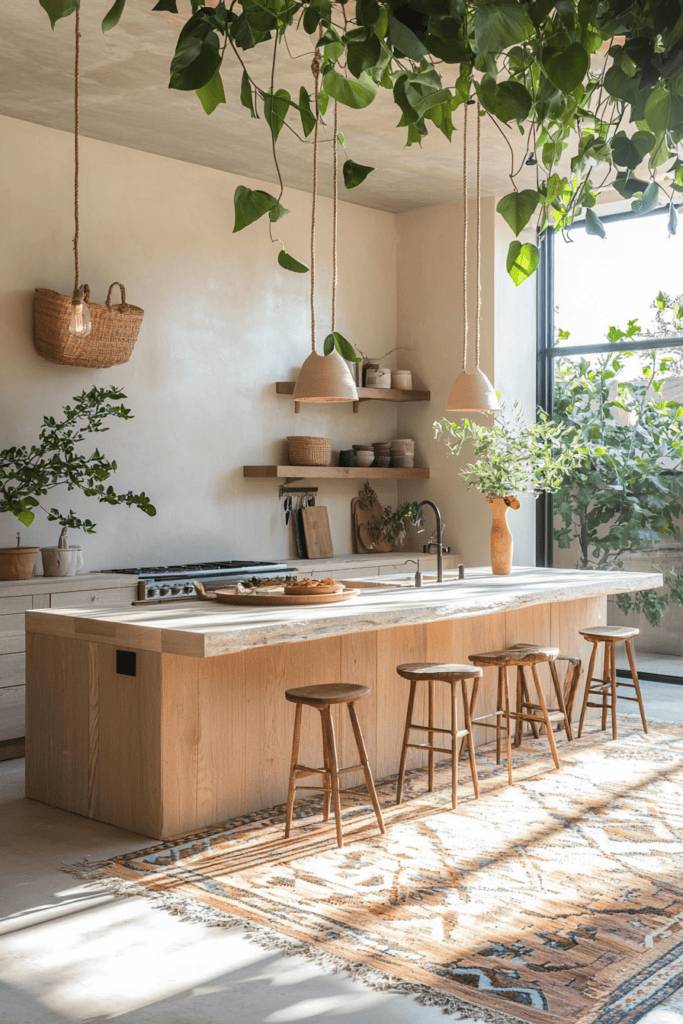 A statement kitchen island can serve as the heart of your boho kitchen, drawing attention and sparking conversation. Think of a vibrant, mismatched design that reflects your personality—perhaps a reclaimed wood island with a colorful, mosaic tile top. This creates a focal point that invites family and friends to gather around. Consider incorporating unique features, like open shelving to display your eclectic dishware or hanging plants to enhance that laidback vibe. Opt for playful lighting, such as woven pendant lamps, to accentuate the island’s charm. By choosing an island that speaks to your style, you’ll not only elevate your kitchen’s aesthetic but also create a warm, welcoming space perfect for cooking and entertaining.