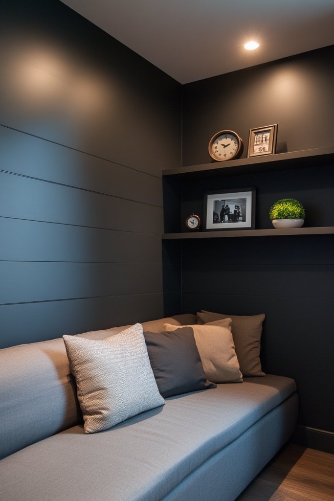 Charcoal works well in both small and large spaces. In small rooms, pair it with reflective surfaces like glass or high-gloss furniture to prevent a closed-in feeling. In larger rooms, add warm lighting and textured fabrics to soften the effect. It adapts easily to various styles, from industrial to Scandinavian, by changing accessories and furniture choices.