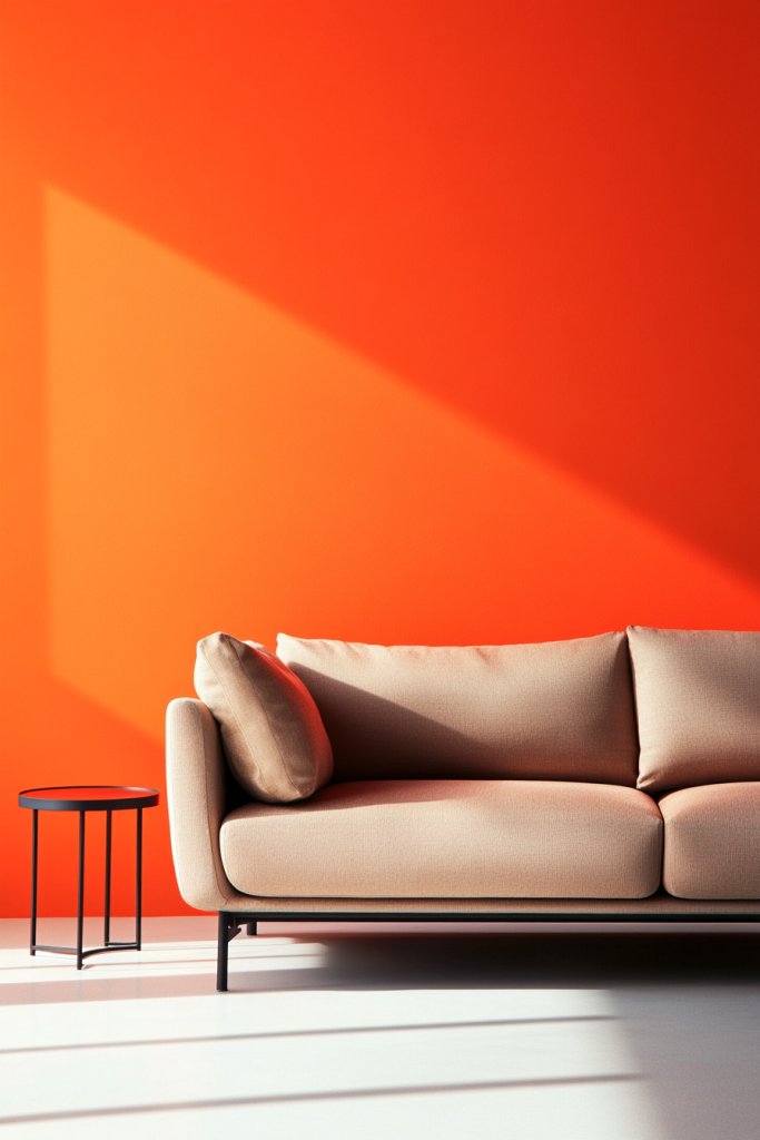 Tangerine pairs well with cool neutrals like gray or navy for a balanced look. In a modern setting, combine it with black or white for a minimalist yet lively vibe. Seasonally, add cozy textiles in winter or floral patterns in spring to keep the space fresh. For a softer approach, layer with pastel shades or incorporate natural materials like wood and jute.