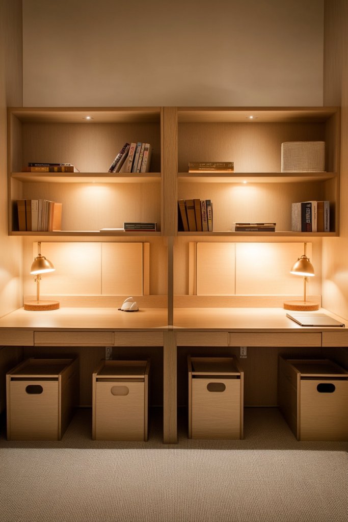 Ever tried squeezing two kids into one tiny study corner? It can be a disaster—clutter everywhere, competing for space, and no one gets to focus. A dual desk area with split organization solves this head-scratcher by giving each boy his own dedicated workspace. It promotes independence, reduces mess, and makes homework less of a battle. Picture two sleek desks side by side, each with its own set of storage bins, shelves, or cubbies. Personalizing these spaces with color-coded organizers or labels means each sibling can find their supplies without chaos. It’s like giving them their own little command centers—no more fighting over who took whose pencil. Plus, it keeps everything tidy and accessible. This arrangement adapts easily to different room layouts and style preferences. You can opt for matching desks in neutral tones or go bold with contrasting colors. Incorporate wall-mounted organizers or under-desk drawers to maximize space and keep desktops clear. Whether your kids are into science, art, or gaming, this setup encourages focus and teamwork. Setting up this dual workspace requires some planning but isn’t overly complicated. Start by measuring the available space to ensure enough room for two chairs, desks, and storage. Use modular units or adjustable shelves to accommodate growing needs. Remember, ergonomics matter—comfortable chairs and good lighting help boost concentration. Personal touches make each station special—maybe a clip board for notes, a small framed photo, or a favorite patterned mat. Label each storage zone clearly so everyone knows where their stuff belongs. It’s all about creating a sense of ownership and responsibility, which pays off in the long run. In the end, a dual desk with split organization transforms a chaotic corner into a productive, harmonious zone. It teaches kids to manage their space and supplies while fostering cooperation. Ready to make homework time less of a headache? This setup might just be your new best friend.
